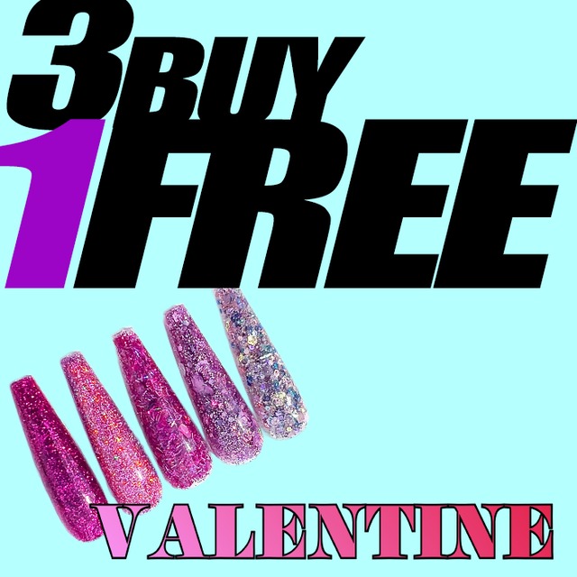 3個購入すると1つ無料! 4/1から4/6までの期間限定です✨ ※必ずこの商品ページからご購入お願いいたします※ ↓購入方法↓ 商品オプションから欲しい商品を1つずつお選びください。 4つ目まで選ばないと購入できませんのでご注意ください。 こちらは VALENTINEシリーズの特設ページになります。 pinkで彩られたカラーバリエーション。 さまざまなラメやホログラムがふんだんに使われたシリーズです。